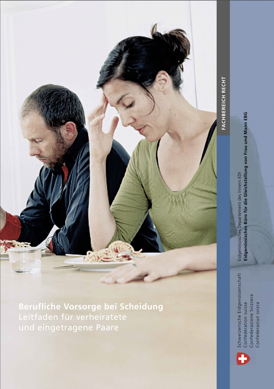 Die Broschüre vermittelt mit Fallillustrationen grundlegendes Wissen über die wichtigsten Aspekte und Gesetzesbestimmungen des schweizerischen Scheidungsrechts und gibt Antworten auf vorsorgerelevante Fragen. Die Info-Broschüre (d/f/i) kann beim Bundesamt für Bauten und Logistik BBL bestellt werden:
