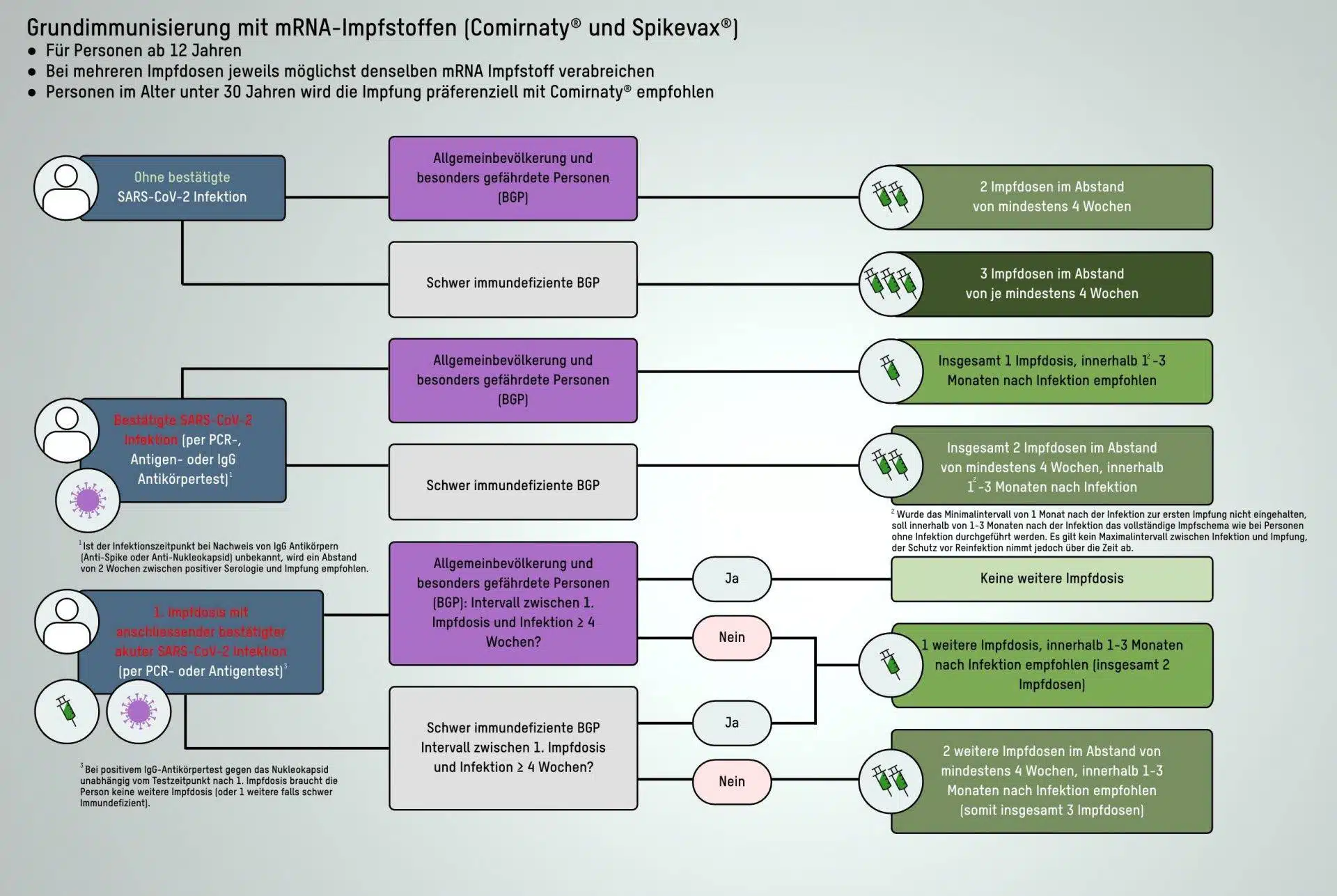 - Bivalente mRNA-Impfstoffe, die an die Omikron-Variante BA.1 angepasst sind, sollen für die Auffrischimpfung bevorzugt verabreicht werden.