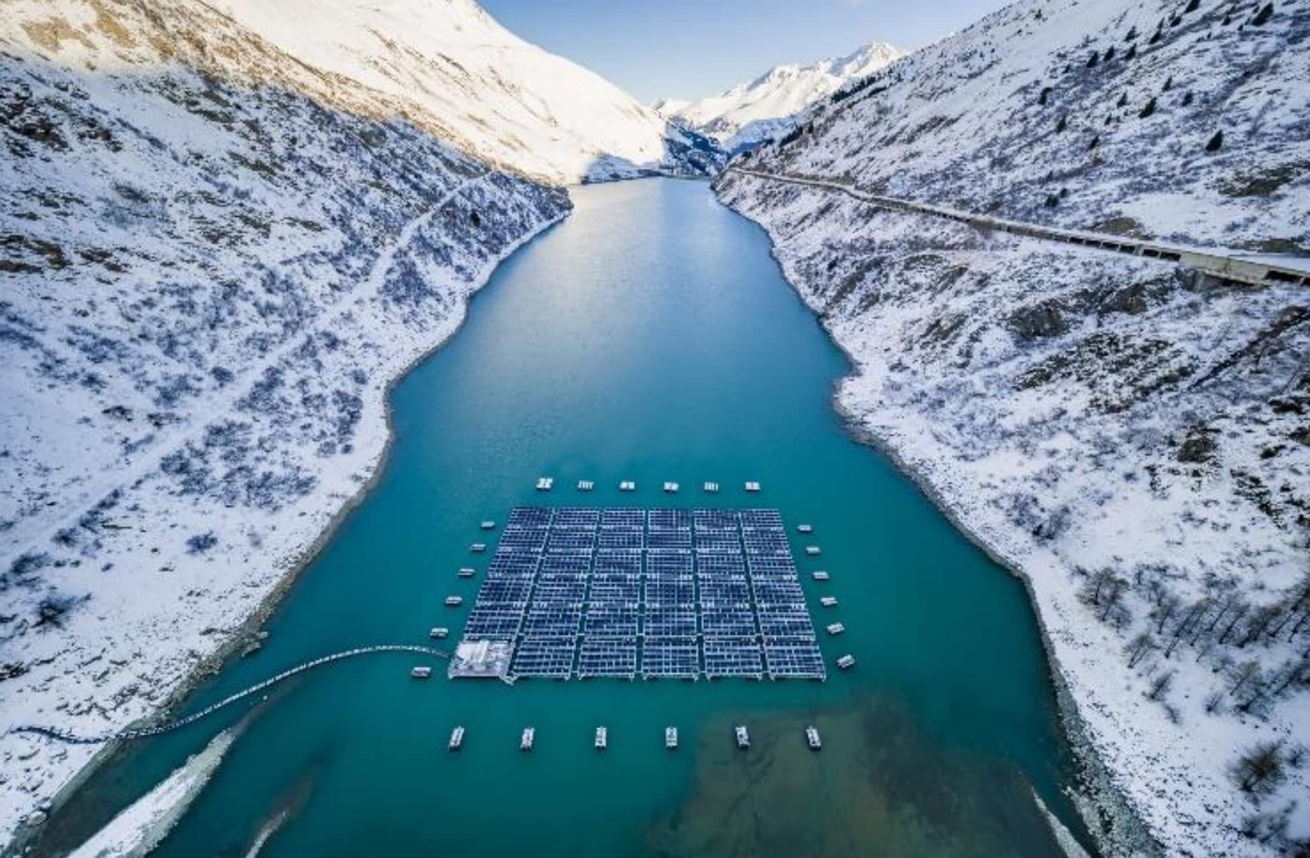 Bild: Schwimmende Solaranlage auf dem Lac des Toules, ©2022 Romande Energie