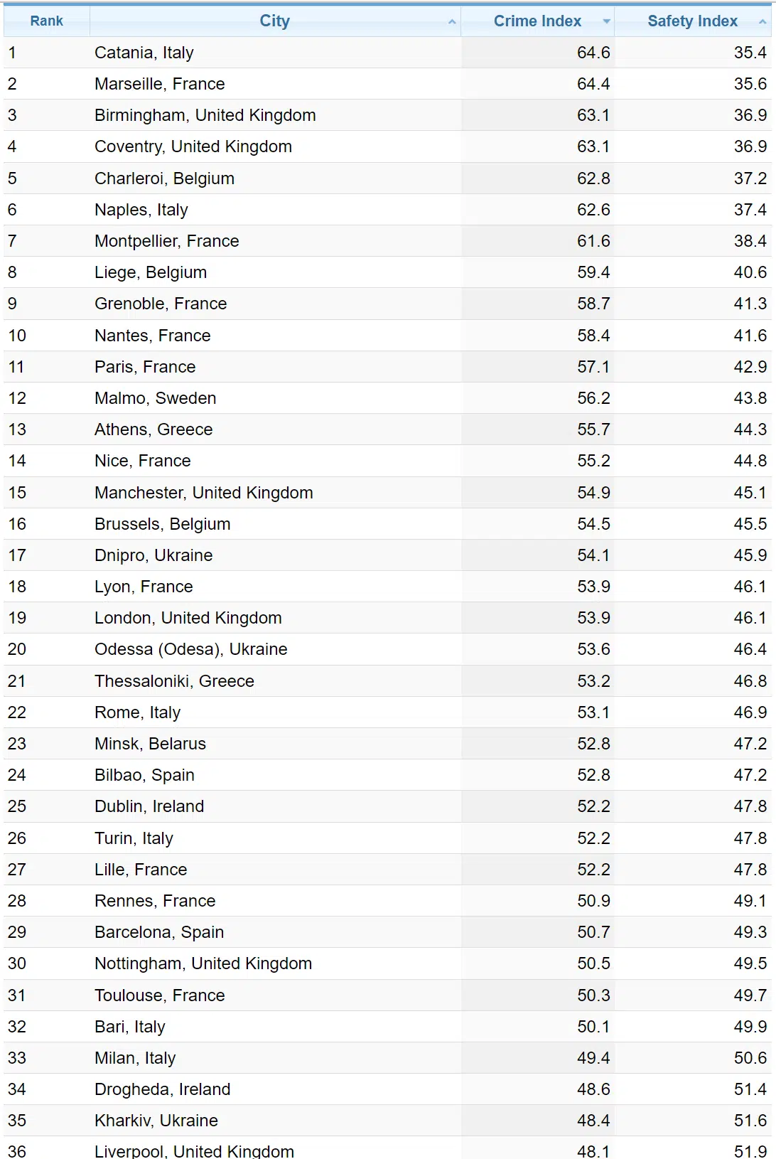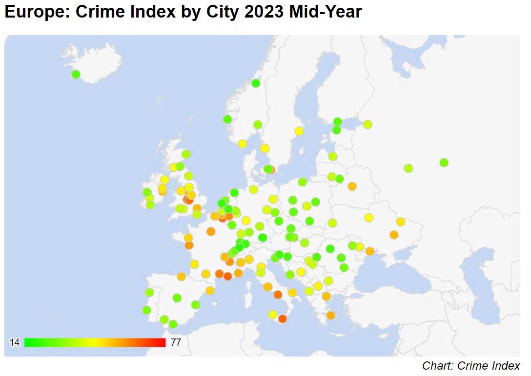 Den einleitenden Fragen geht die Datenbank „Numbeo“ jährlich in einer Umfrage nach und erstellt daraus regelmäßig den «Crime-Index», der die gefährlichsten Städte Europas abbildet.