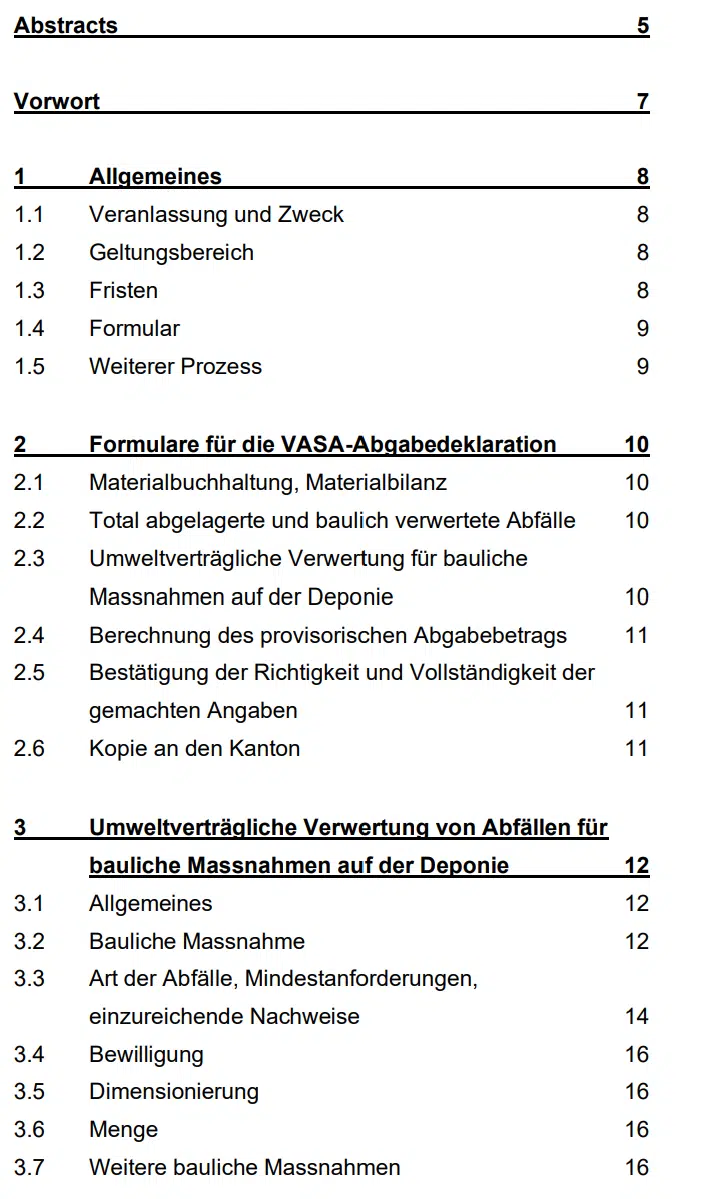 Vollzugshilfe für die Inhaber von VASA-Deponien in der Schweiz.