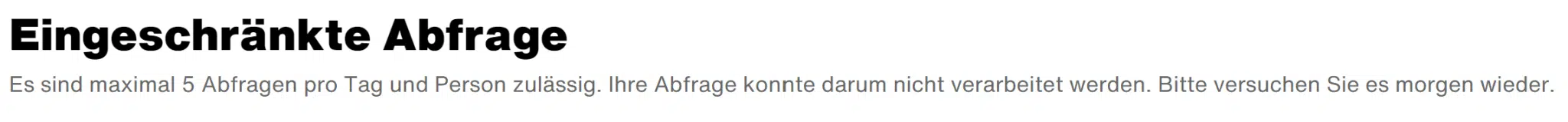 Seit wenigen Tagen ist das neue System online und es sind wieder fünf Abfragen pro Tag möglich.