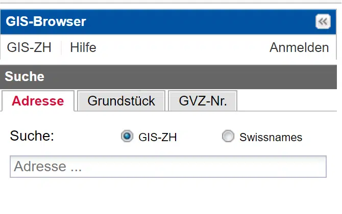 Im GIS-System angekommen, gilt es in der linken Spalte im Erfassungsfeld «Adresse» einzugeben: