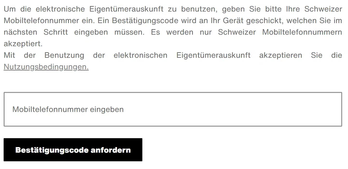 Bestimmte Liegenschaften (zB kantonale Verwaltung) sind der Eigentümerabfrage nicht zugänglich.